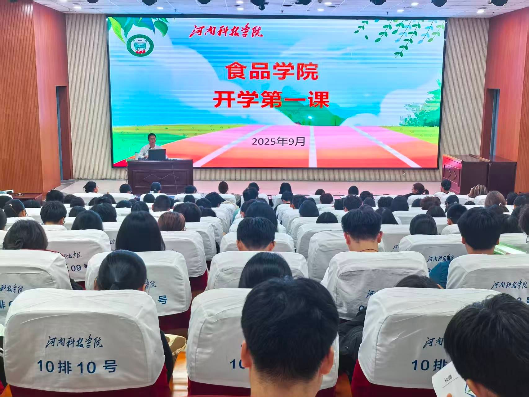 9月17日,食品学院2025级新生开学第一课在图书馆报告厅举行。食品学院党委副书记郭延成以《铭记、奋斗、担当、有为》为题,带领全体新生回溯我校历史脉络和学院办学历程,锚定生涯坐标,明晰专业使命,为新生们开启了大学生涯的启蒙课。