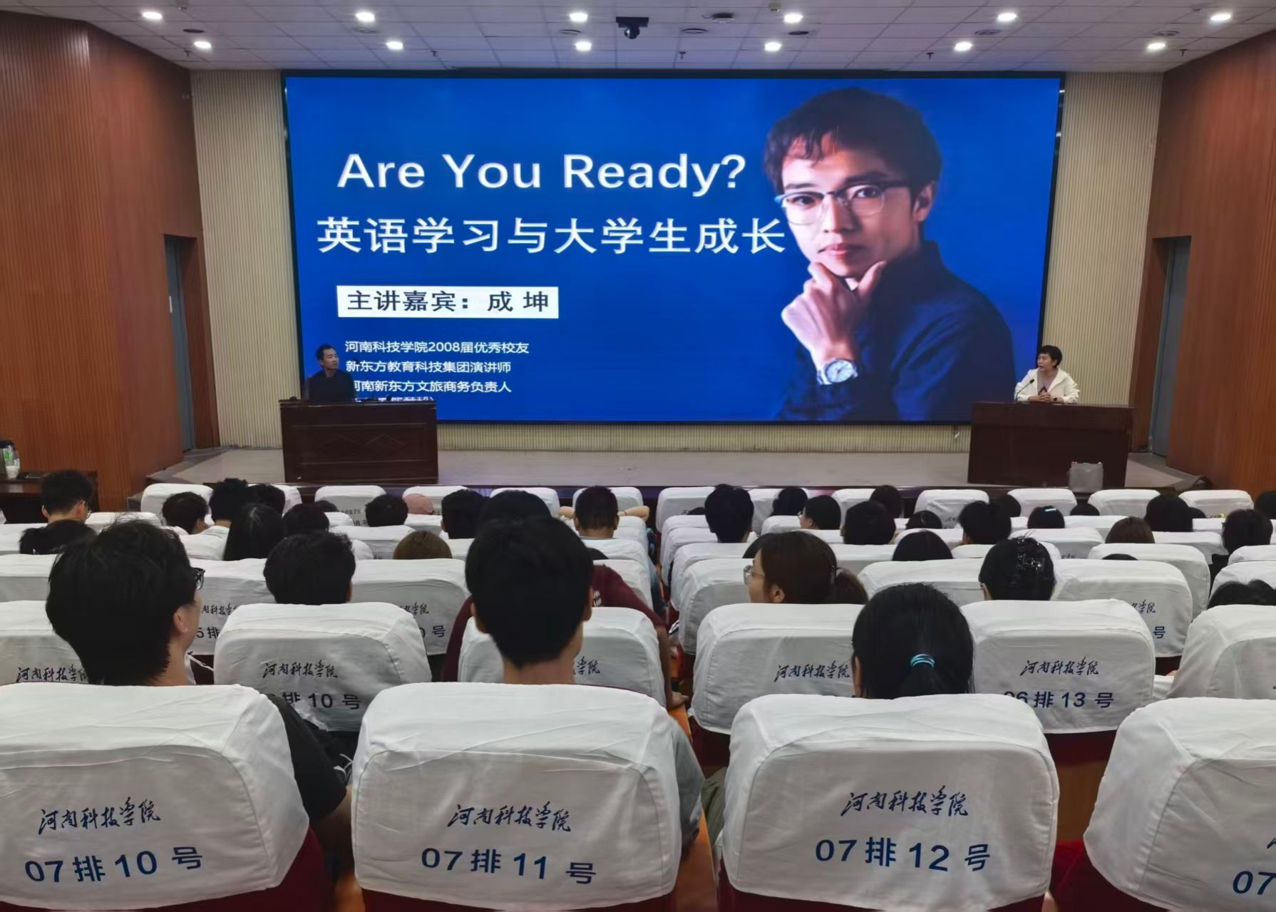 9月27日,食品学院在图书馆学术报告厅为2025级全体新生举办了“英语学习与大学生成长”的职业生涯教育专题讲座,邀请2008届校友、新东方教育科技集团演讲师、河南新东方文旅商务负责人成坤担任主讲。2025级新生200余人参加,本次讲座由陈腾主持。
