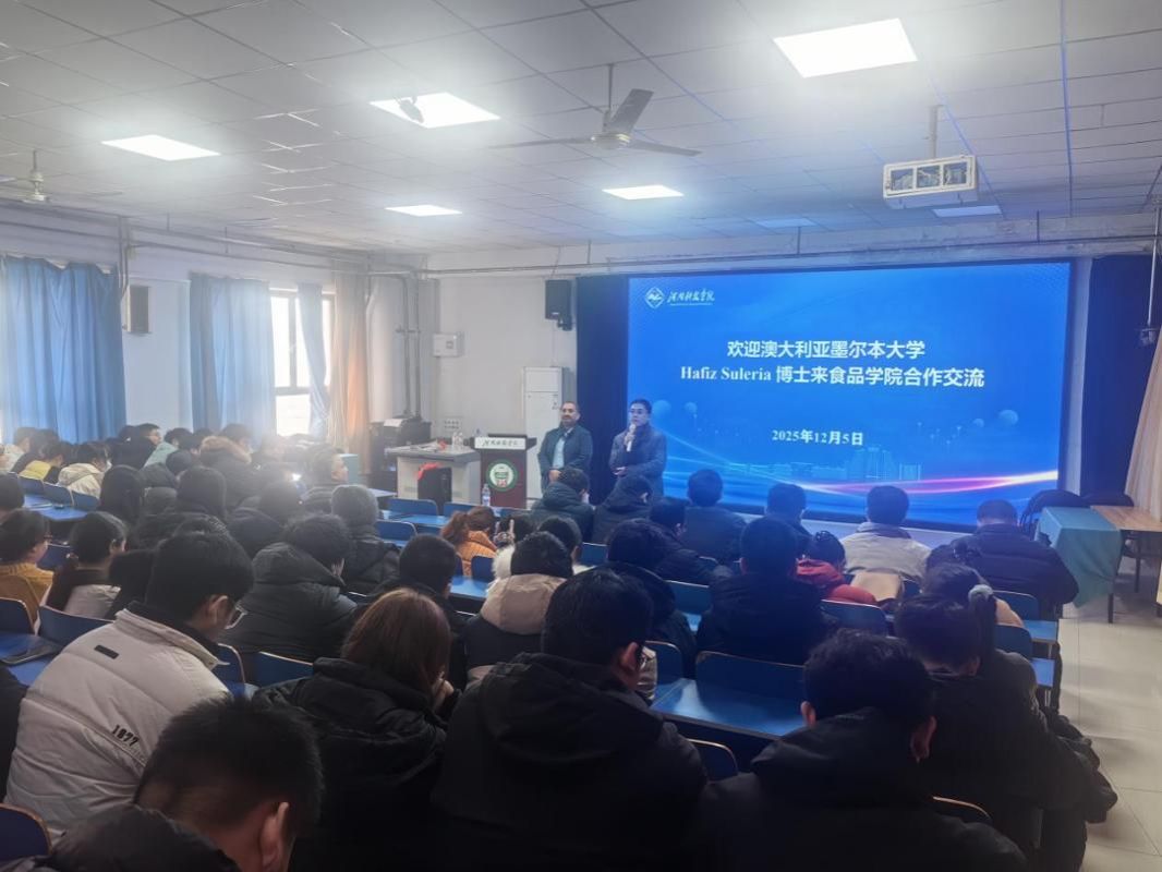 12月5日上午,澳大利亚墨尔本大学农业食品与生态系统科学学院Hafiz Suleria副教授应邀在食品学院5#教学楼合一开展学术交流。食品学院中青年教师及研究生参加报告会,会议由食品学院副院长张令文主持。