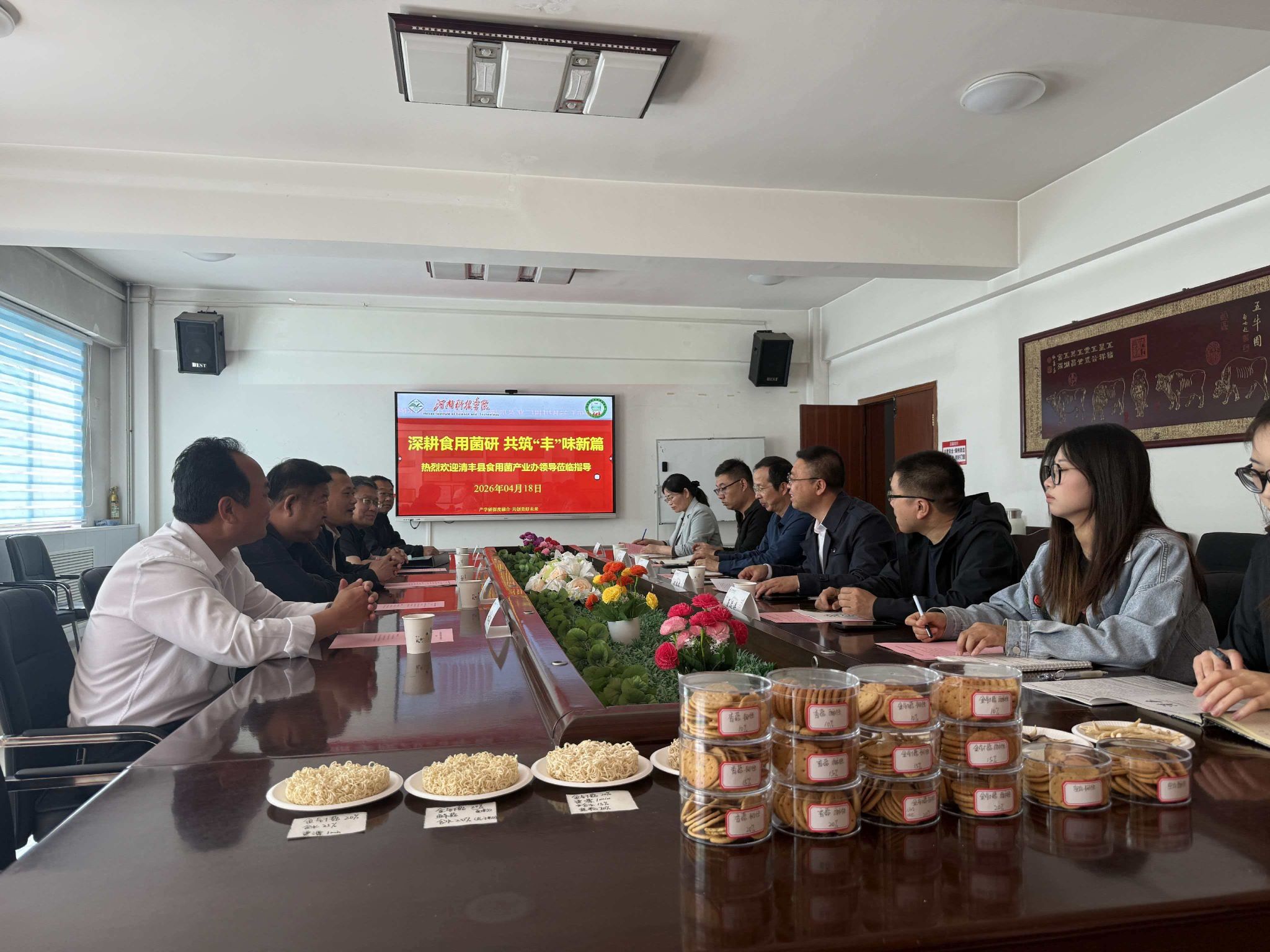 随后,双方围绕食用菌深加工技术研发、产品创新、人才培养、菌渣资源化利用等合作方向展开热烈讨论,就联合开展技术攻关、共建科研实践基地、推动成果落地转化等达成初步共识。清丰县食用菌产业发展服务中心领导表示,将积极搭建合作平台,推动地方企业与食品学院科研团队精准对接,为科研成果落地提供保障;食品学院食用菌团队成员也结合自身研究方向,针对清丰县食用菌产业发展需求,提出了针对性的技术解决方案和合作思路。